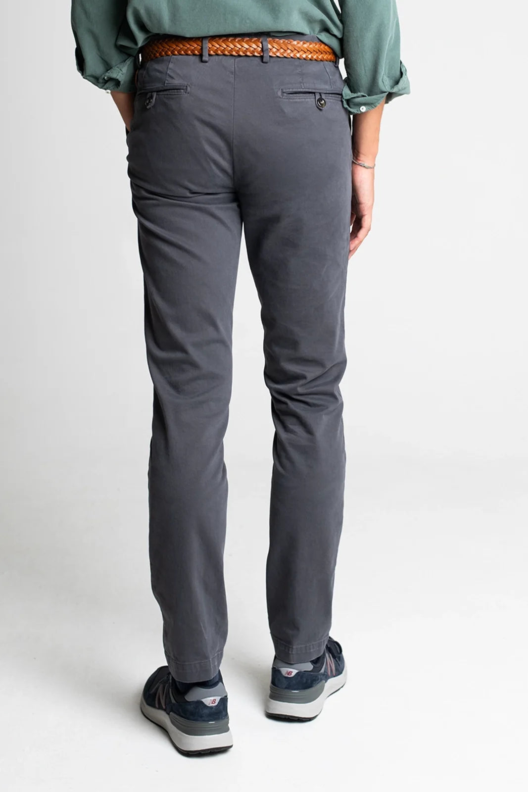 Pantalón chino de color gris oscuro, un imprescindible esta temporada.