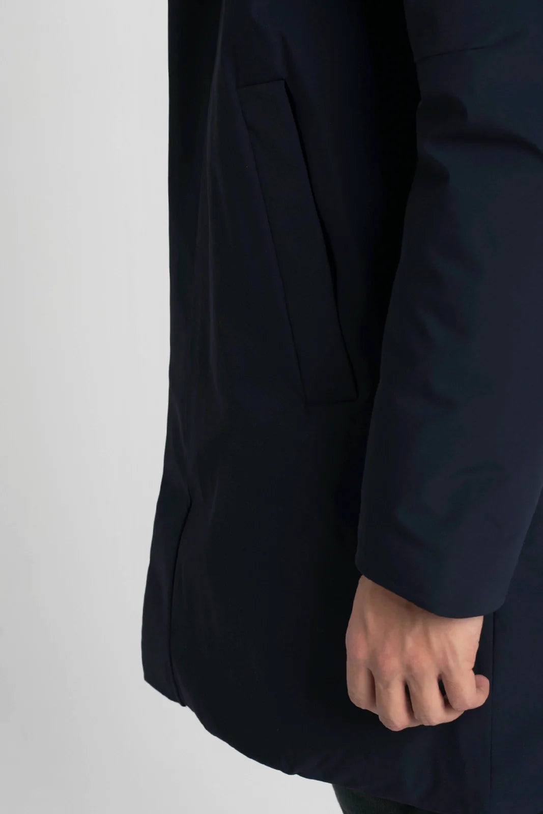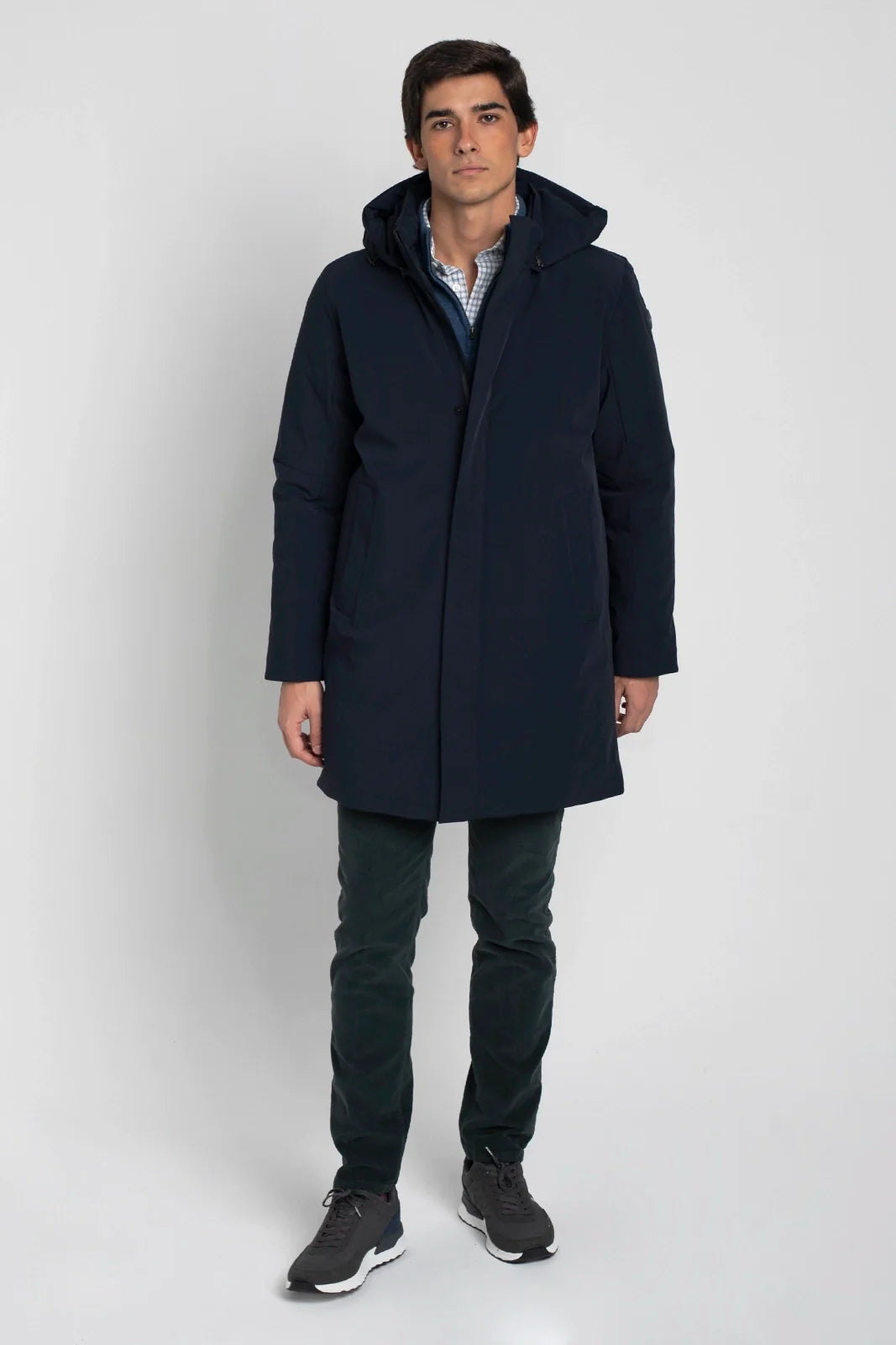 Parka larga con capucha azul marino, modelo Waterford, de la marca Homeward.